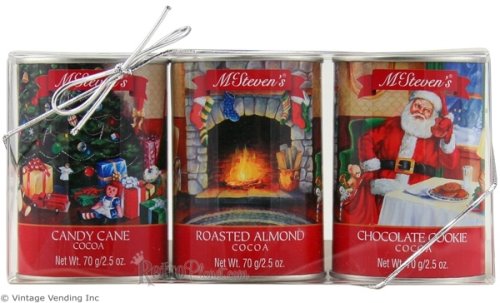 - Set of 3 tins featured flavors: candy cane cocoa, roasted almond cocoa, chocolate cookie cocoa